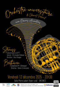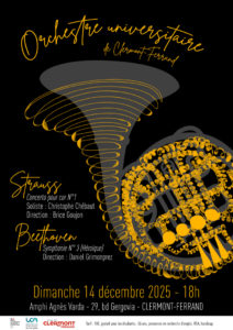 Programme : 3ème symphonie de Beethoven et Concerto pour cor de Strauss, soliste Christophe Chebaud, membre de l’Orchestre Universitaire de Clermont-Ferrand.